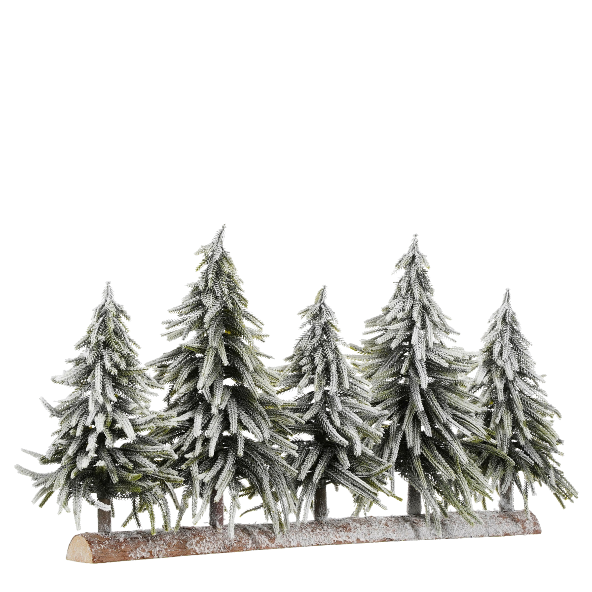 Deko-Baumstamm mit künstlichen Weihnachtsbäumen – L80 x H40 cm – grün gefrostet